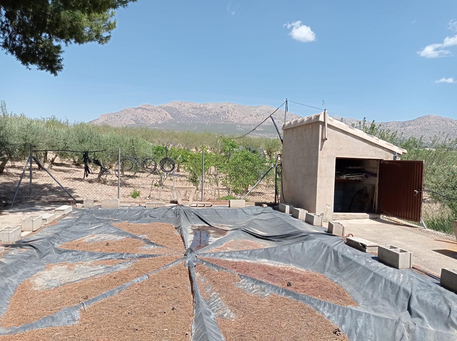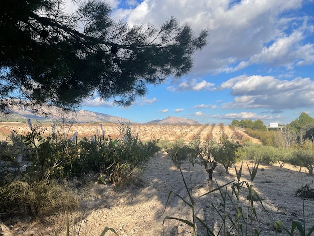 Op het land van bij 40.000m2 vind je rond de 700 amandelbomen (type Tuono, Guaza en Ferragnes) met een gemiddelde oogst van rond de 2.000 kilo per jaar. De goed onderhouden olijfboomgaard biedt plek aan ruim 100 olijfbomen (Hojiblanca, Picual en Arbequina). De oogst ligt tussen de 1.800 kilo en 2.500 kilo per jaar. Van de druivenstruiken maken de huidige eigenaren rond de 200 liter wijn per jaar. Ook staan er nog eens 30 kersenbomen. Groot voordeel is de legale, geregistreerde waterput, waarmee het land bevloeid kan worden.